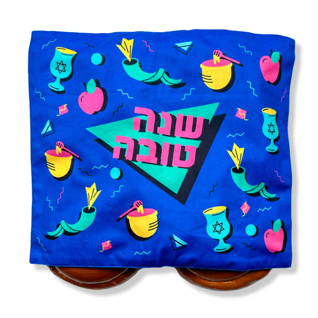 Bring a nostalgic twist to your Rosh Hashanah celebrations with this cute '80s Shana Tova Challah Cover! Bursting with vibrant '80s-inspired geometric designs, this challah cover features playful motifs like shofars, apples, and honey. It's not just a table accessory��it's a conversation starter that blends retro fun with timeless tradition. So grab your favorite mixtape, embrace the neon vibes, and make this New Year unforgettable as you welcome 5785 in true throwback style!