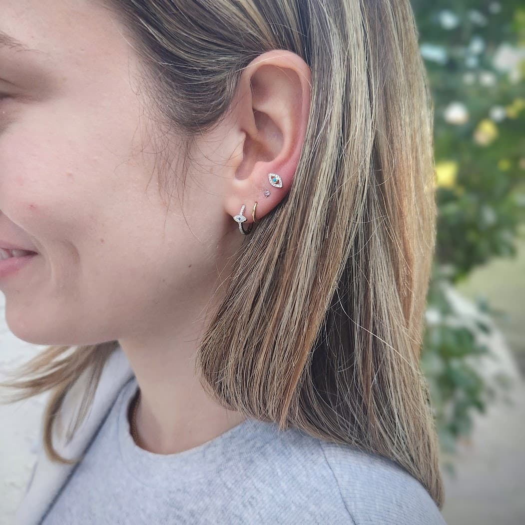 Get ready to dazzle your ears with these adorable huggie earrings! Packed with pave diamonds and a dash of lucky blue sapphire, they're your ultimate day-to-night companions. Perfect for little fashionistas to sweet sixteen celebrations and beyond.