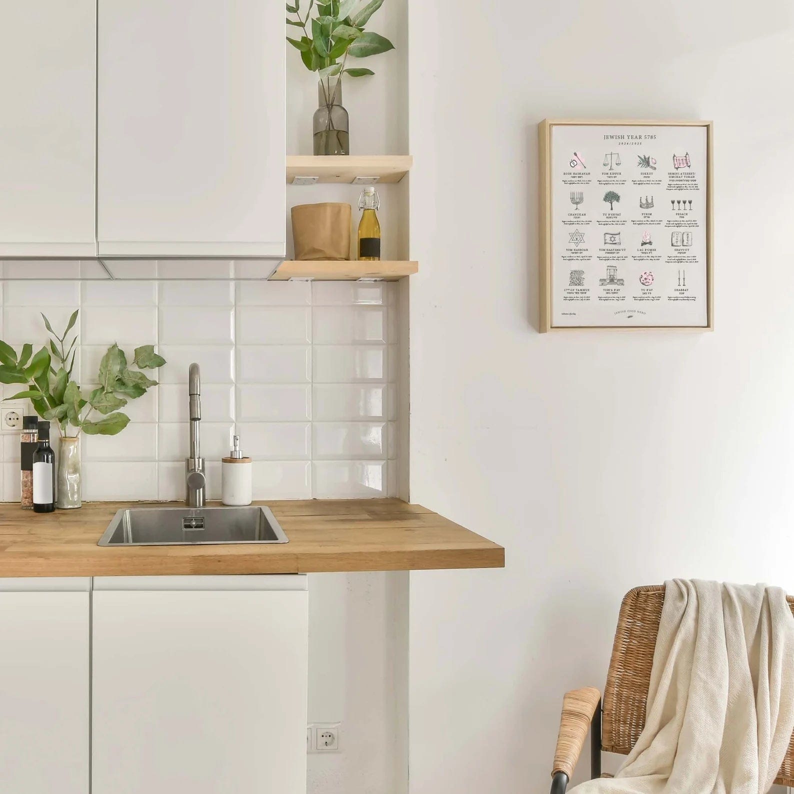 Are you looking for a beautiful and unique Jewish calendar for 2024-2025? This handmade Jewish Wall Art Calendar Planner features custom icons for the 16 major Jewish holidays and this year's dates in Hebrew Year 5785.