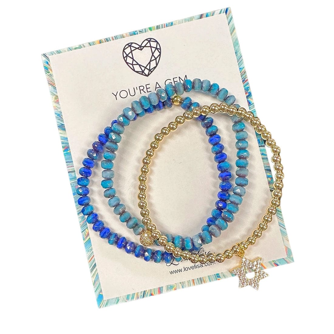 - Includes: Two Harper crystal bracelets and one 4mm gold Star of David bracelet