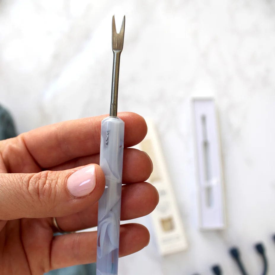 Keep your menorah shining bright with the Ezzie Menorah Pick, the perfect tool for easily removing wax buildup. Featuring a pronged end designed to break up and gently scrape out dried wax from menorah candle holders, this tool works wonders for Shabbat candlesticks too. Say goodbye to frustrating cleanups with kitchen knives or toothpicks��this simple yet effective tool makes it effortless.