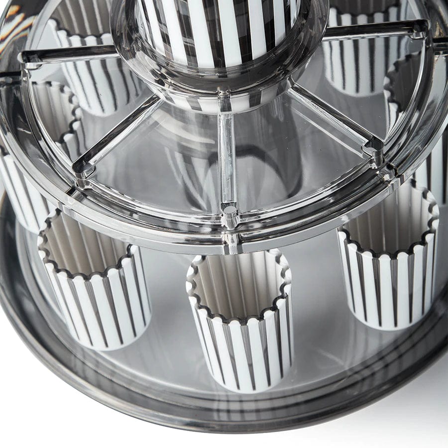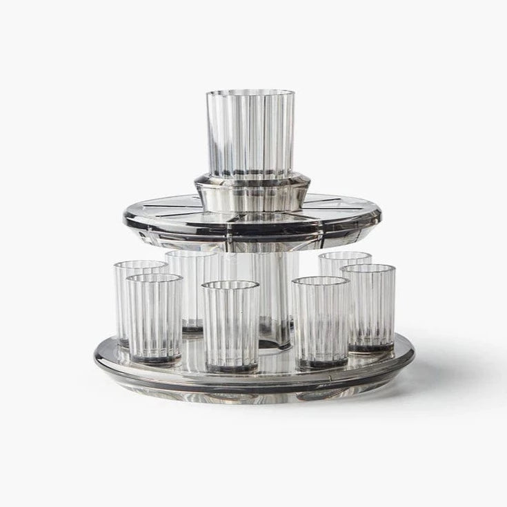 Designed for a flawless pour from the kiddush cup, down the expertly designed canals, into the eight awaiting small wine cups. The dazzling experience of using this wine fountain will delight guests and be a showstopper on Shabbat and holidays. Endlessly luxe in our signature statement acrylic, it makes for an unforgettable gift for the couple that appreciates exceptional engineering with a modern vibe.