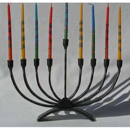 Steven Bronstein of Blackthorne Forge has created this magnificent steel menorah in his blacksmith shop, reminiscent of fine quality craftsmanship from hundreds of years ago. This substantial menorah is sure to become a family heirloom and is a work of art to be displayed year round.