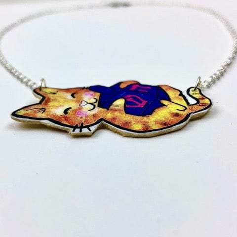 Hanukkah is a great time to celebrate all the things that make you happy �� whether it��s eating sufganiyot with family or watching your kitten play with a dreidel. Playfully eclectic, this lightweight necklace is perfect for the 8 crazy nights of Hanukkah! Treat yourself to a necklace as unique as you �� you��re worth it! This necklace is an original design that depicts an orange tabby cat blissfully playing with a dreidel.