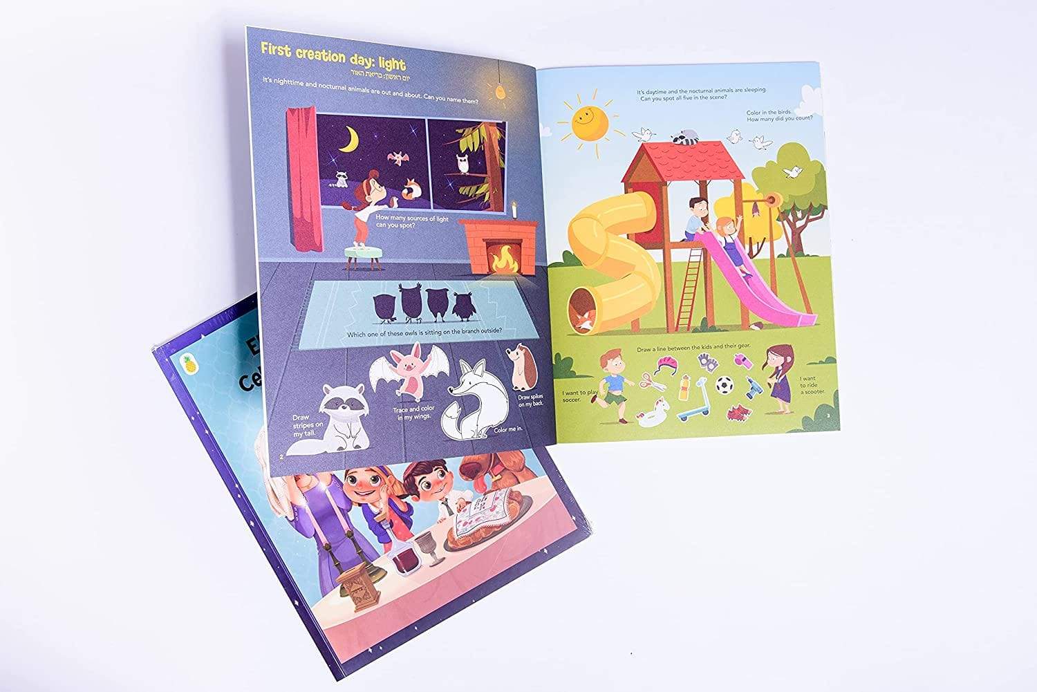 Children will enjoy learning all about Shabbat with this delightful and beautifully illustrated sticker activity book. Join Ella and Noah on a magical journey through the seven days of creation and help them with the Shabbat preparations: shopping, cleaning, baking challah, cooking and setting the table. Celebrate Shabbat with Ella, Noah and their family, and learn all about Shabbat rituals. This book is packed with so many fabulous activities �� kids just won��t be able to put it down.