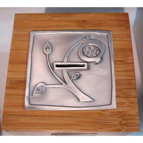 This magnificent tzedakah box is made from beautiful and richly colored spalted maple wood. A raised pomegranate made from pewter is on the top and a tree of life is on the front. This would make a wonderful Bar or Bat Mitzvah gift, and a wonderful gift to place on an office desk or to decorate the home. Emily Rosenfeld loves everything about designing jewelry and Judaica. She turned her passion into her career in 1991. 'I love that in my day I get to focus on the creative, whether it is designing, making or getting the work out to customers. Because it is all about sharing my work, a large part of my day is also about relationships, the people I work with in my studio, my retailers and my customers. I feel really blessed.'