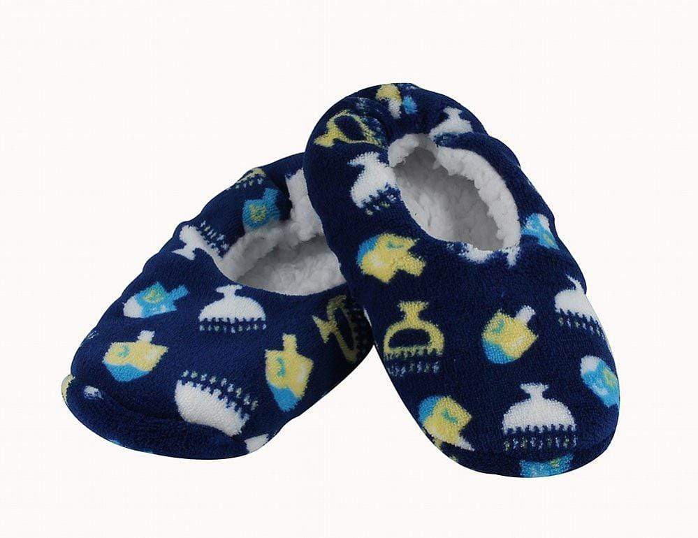 Hanukkah novelty snuggly slippers for the whole family!� Super soft and comfy with grips on the bottom. 100% polyester. Vibrant Hanukkah print by Yoel Judowitz.