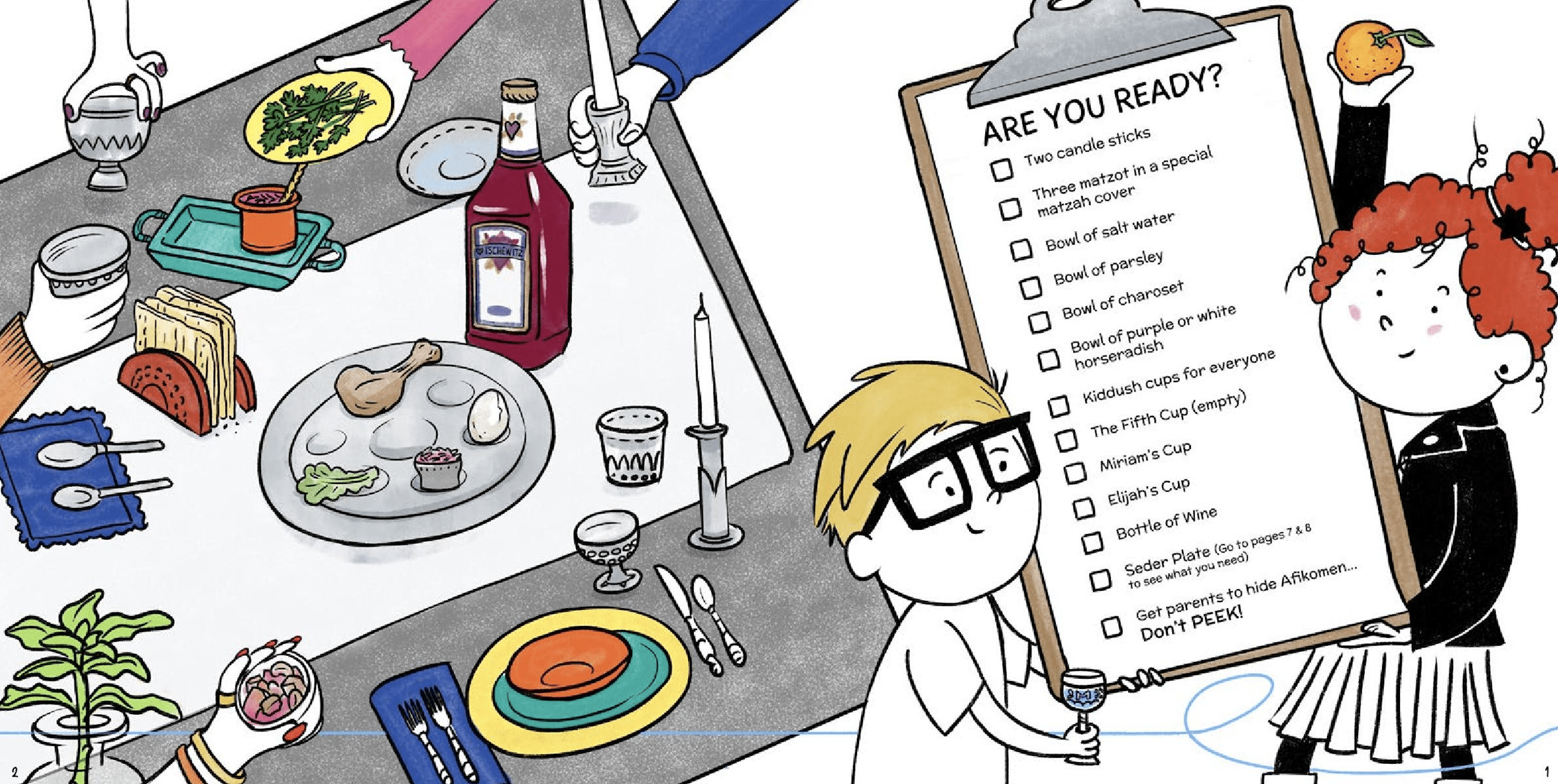 The Haggadah Collective matches every page of Hug-It-Out. Kids and adults are literally on the same page from getting your table ready, reciting all of the traditional prayers and singing their favorite Passover songs.
