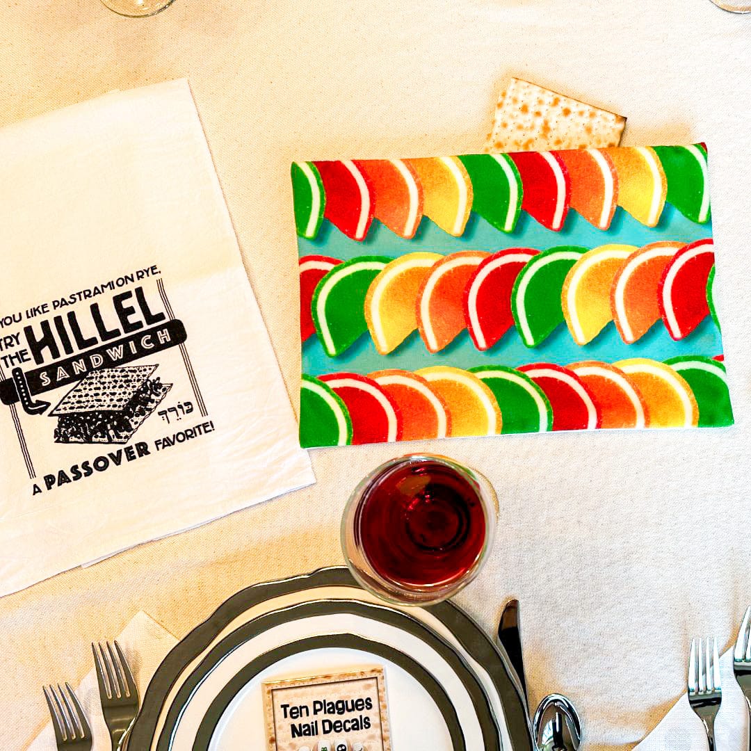 Most of us have a love-hate relationship with Passover desserts, but this jelly fruit slices afikomen bag is just the thing to make the Passover seder sweeter. Modern with bright pops of color, we��re pretty sure it��ll make finding the afikomen more ��fruitful!��