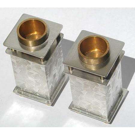 These Shabbat candlesticks are magnificent! Handmade from pewter and brass, the candlesticks come with two sets of brass inserts to fit either standard sized Shabbat candles or a set of traditional tapered candles. These modern and elegant Shabbat candlesticks would make a beautiful addition to any home.