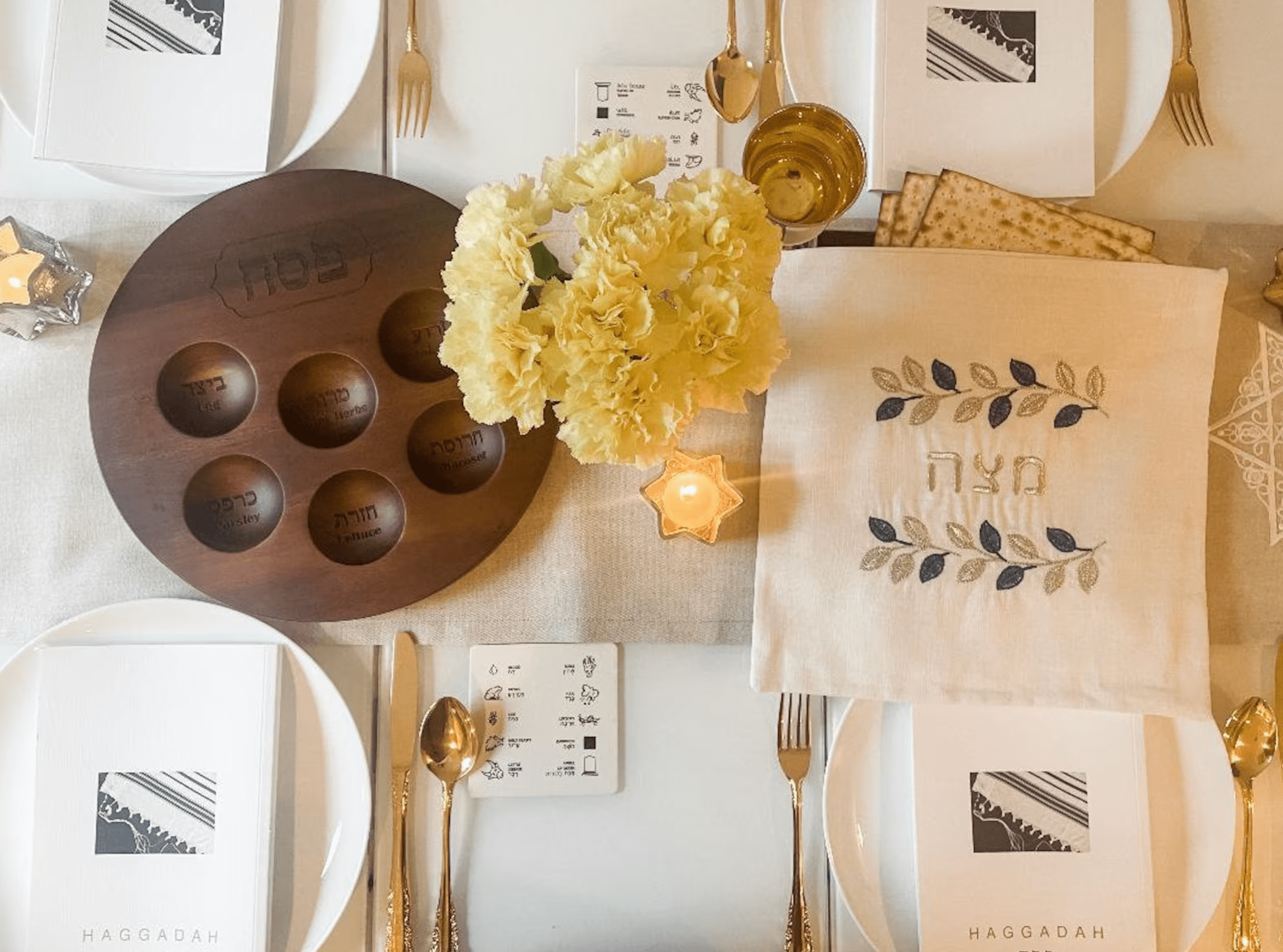 Celebrate Passover with a touch of handmade artistry. This off-white silver and blue matzah cover and afikomen bag set features delicate silver and blue embroidery, handmade in Spain, that enhances your Seder experience. Embroidered in Hebrew, this elegant set makes for the holiday celebration.