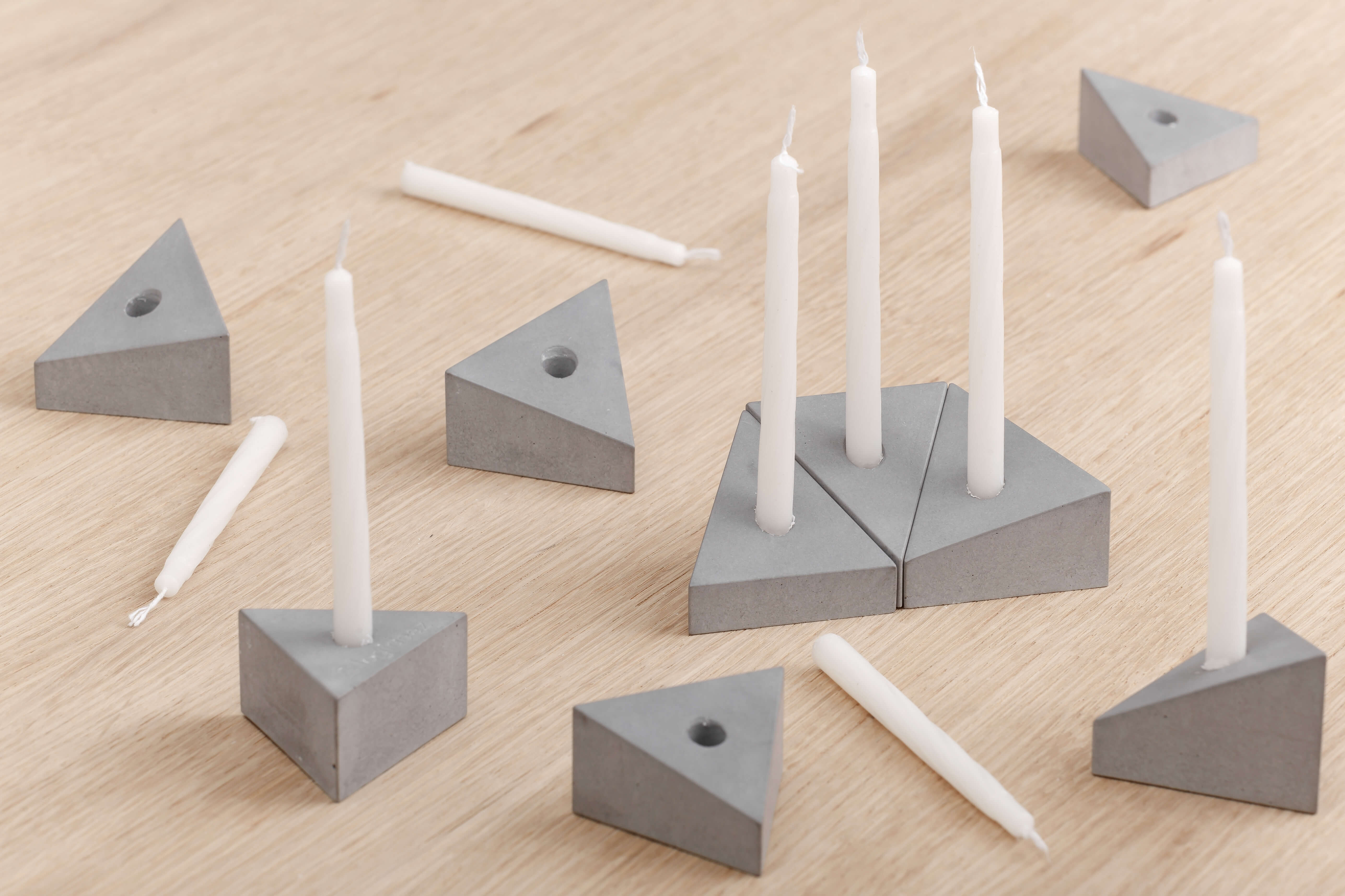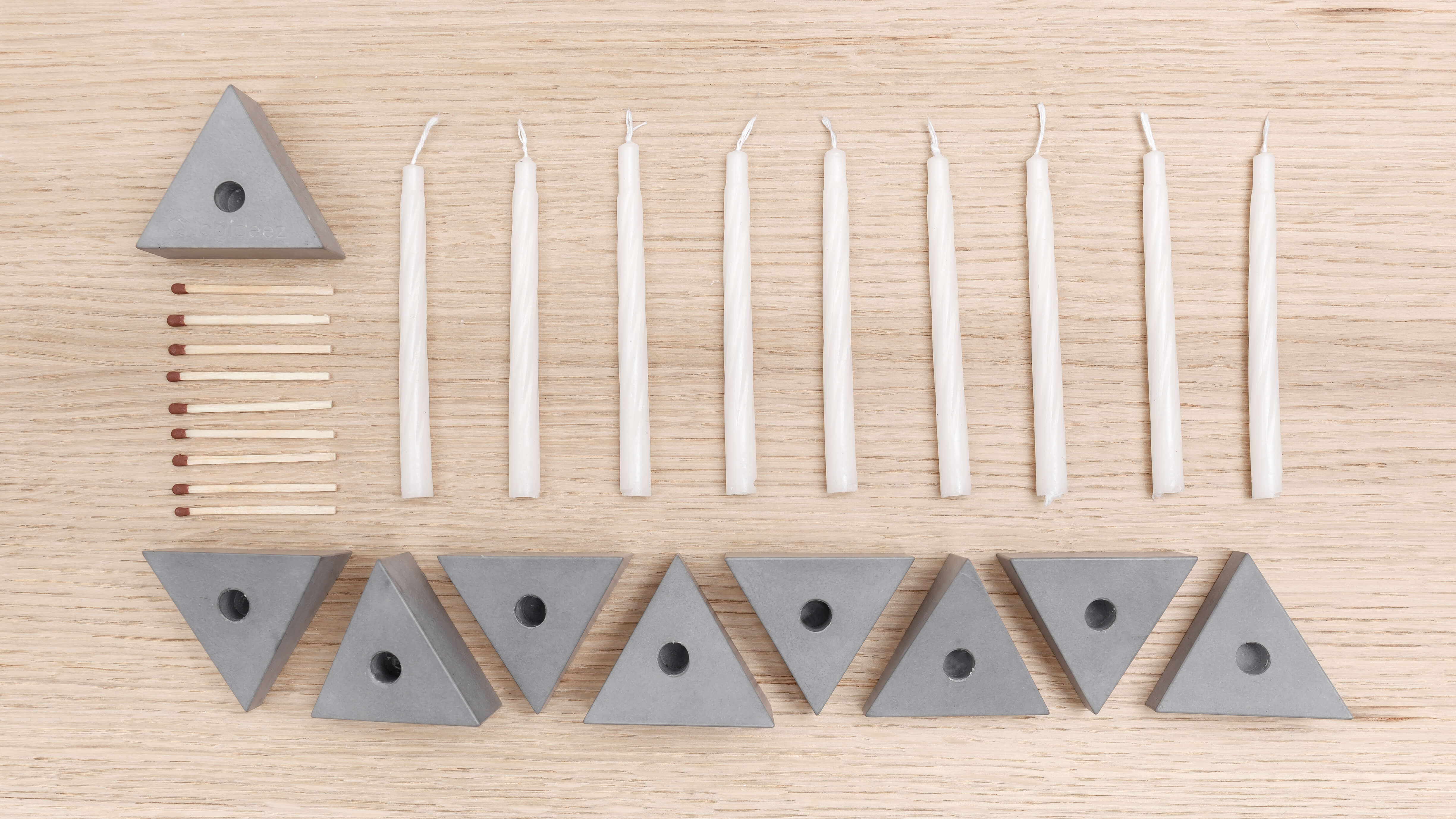 This set of Miracle Edition Prisms Menorah can be arranged in many variations, allowing you to find endless patterns and display your candles in the most unique ways every night.� Create your own menorah by placing each prism next to each other to form a continuous surface. The Logifaces' Miracle Edition offers endless different and playful arrangements for the eight days holiday. Try to arrange the menorah's candlesticks in new decorative forms every night. The shamash candle to light up all others is the only one with a horizontal surface.