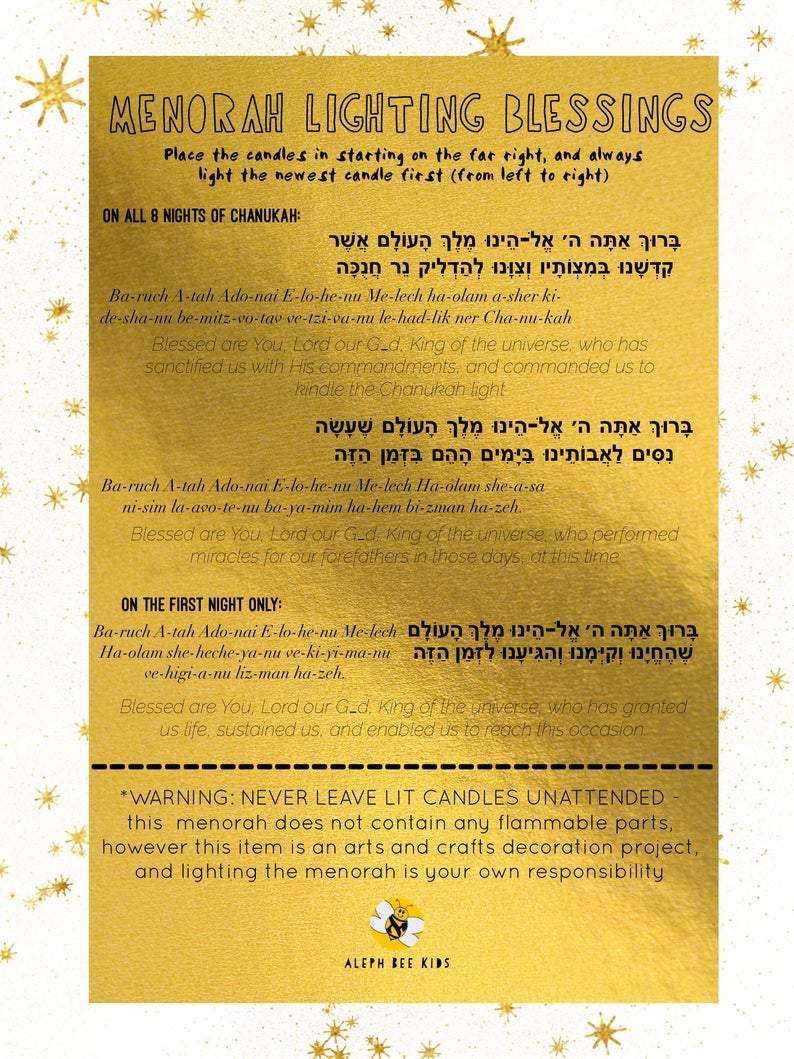 *Never leave any lit candles unattened. This menorah craft does not contain any flammable parts, however, it is sold as an arts and crafts decoration project, and lighting the menorah is your own responsibility.