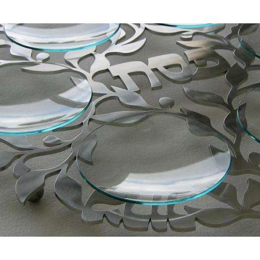 Melanie Dankowicz brings elegant shape and form to this spring-leaf themed Seder plate. A sure treasure to bring out every year for the Passover season.Melanie Dankowicz strives to create striking and complex impressions, uniting traditional motifs with contemporary themes. Her metal and papercut art integrates Hebrew text and Jewish symbolism, bringing out the beauty of these symbols by balancing the flow of lines with the depth of space.