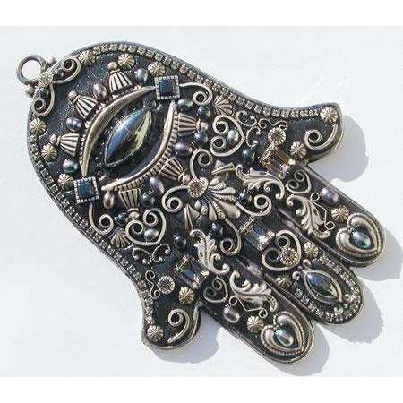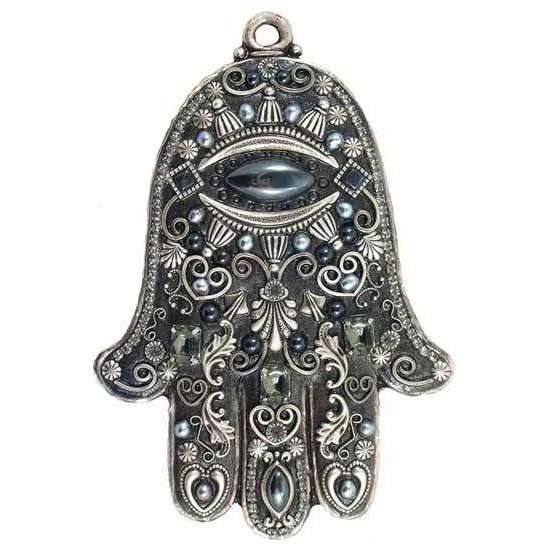 The Wall Hamsa is an amulet of protection for your home. It symbolizes the hand of God and is, in all faiths, a protective sign. The perfect housewarming gift, this hamsa features black Swarovski crystals and an eye design in the center.If you love the symbology of the hamsa hand, check out our entire hamsa collection.
