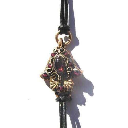 Michal Golan Garnet Hamsa Bracelet On Leather