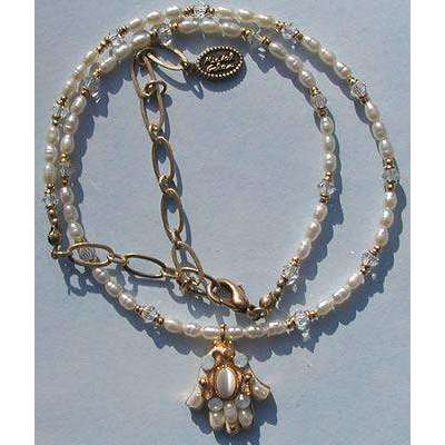 Beautiful, simple, and elegant pearl Michal Golan Hamsa necklace.11/10/07
