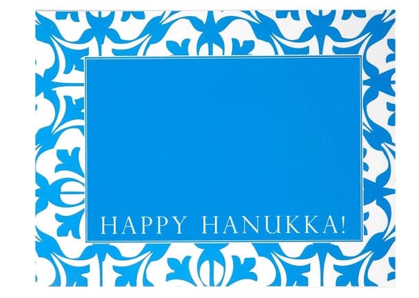 A beautifully designed set of two menorah laminated�drip mat with ancient Damascus designs on margins.�The purple mat reads the Blessing for lighting the Hanukkah candles (��专�转 ����� ��� ����拽��) and the blue wishes you and your family a Happy Hanukka. Keep your window sill safe with these beauties created with love In Jerusalem.