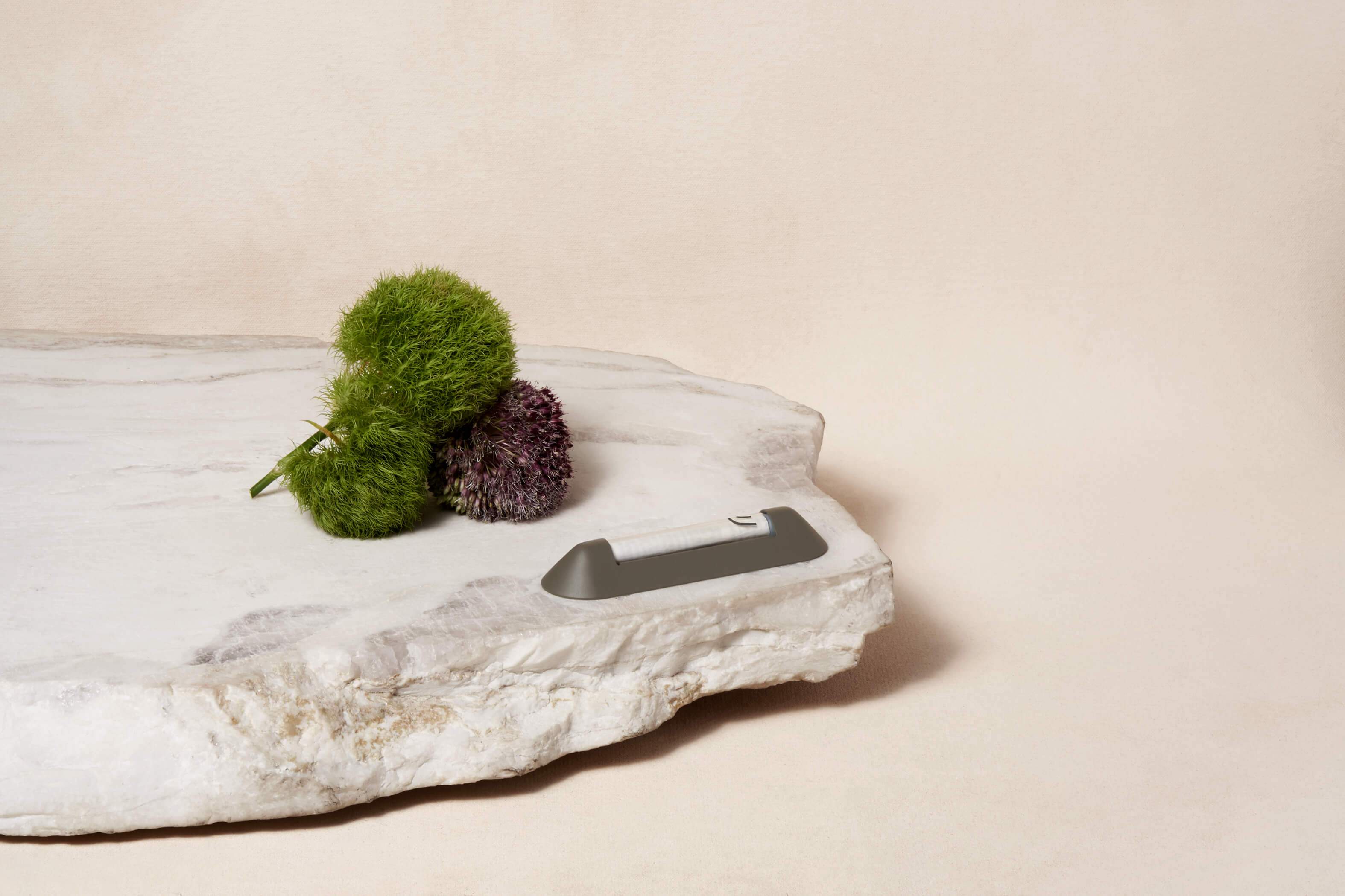 A single sheet of stainless steel is cut and pressed to create both a cover and holder for a glass vial containing the mezuzah's scroll. The steel and glass mezuzah is quiet and architectural in nature with hidden screws, making it a harmonious part of our most important spaces. Mezuzah scroll not included.