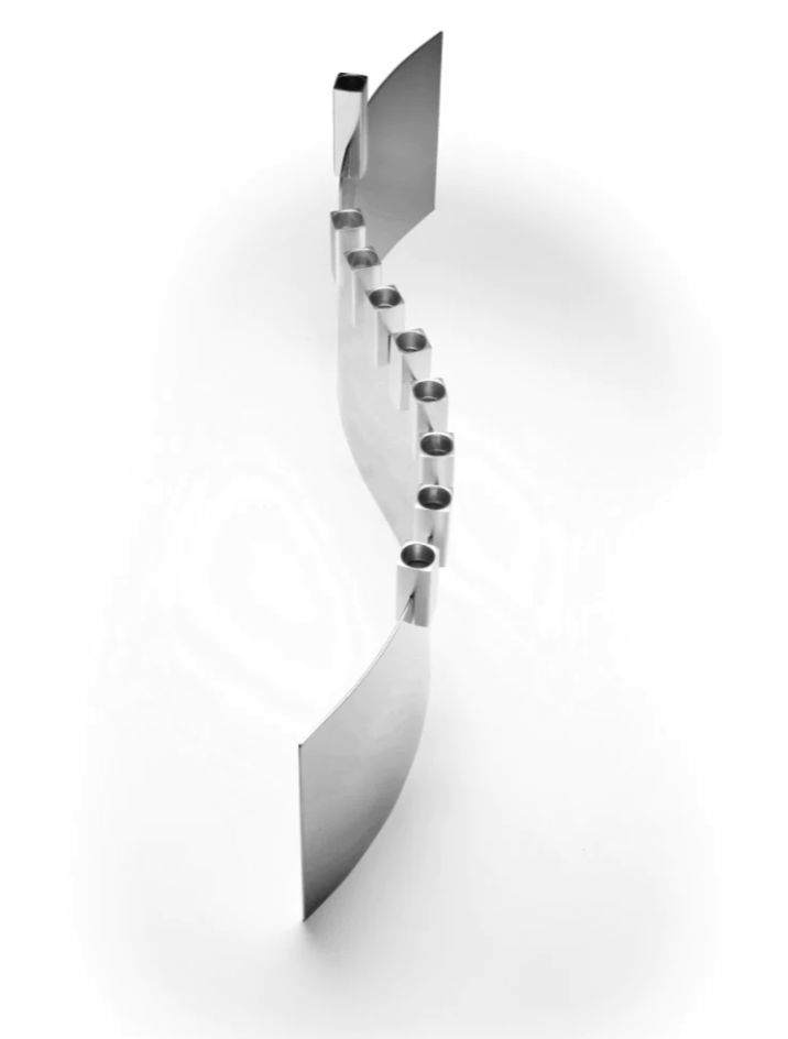 The steel base is created out of gently formed highly polished steel. The gloss anodized aluminum candle holders can be slotted wherever you wish on the top of the steel base and are magnetized with neodyium magnets.�