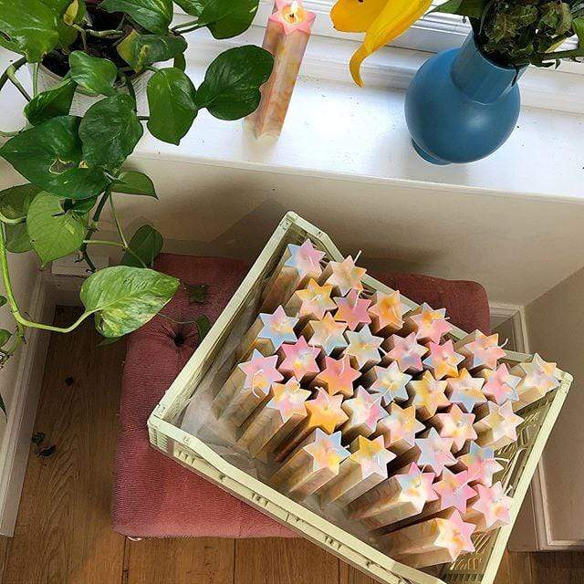Standing at 20 cm (7.87 inches) high, each tie-dye star is dyed by hand using a blend of pastel shades including blue, pink, and orange, and is completely unique and one-of-a-kind! They are lightly scented with paraben-free lavender oil.