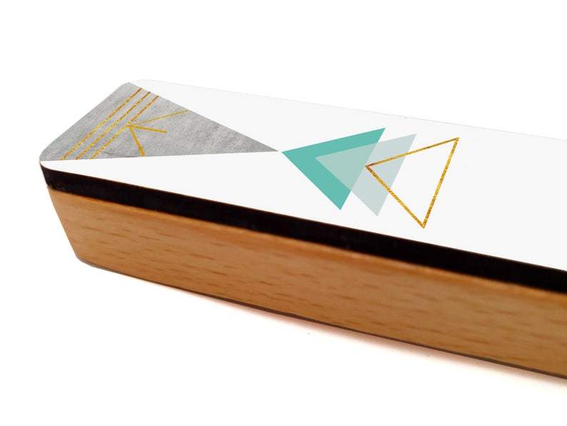 A�modern Triangle Geometric Mezuzah with a�minimalist geometrical design. Made of wood and printed in a special technique in a clean, smoothed matte look.
