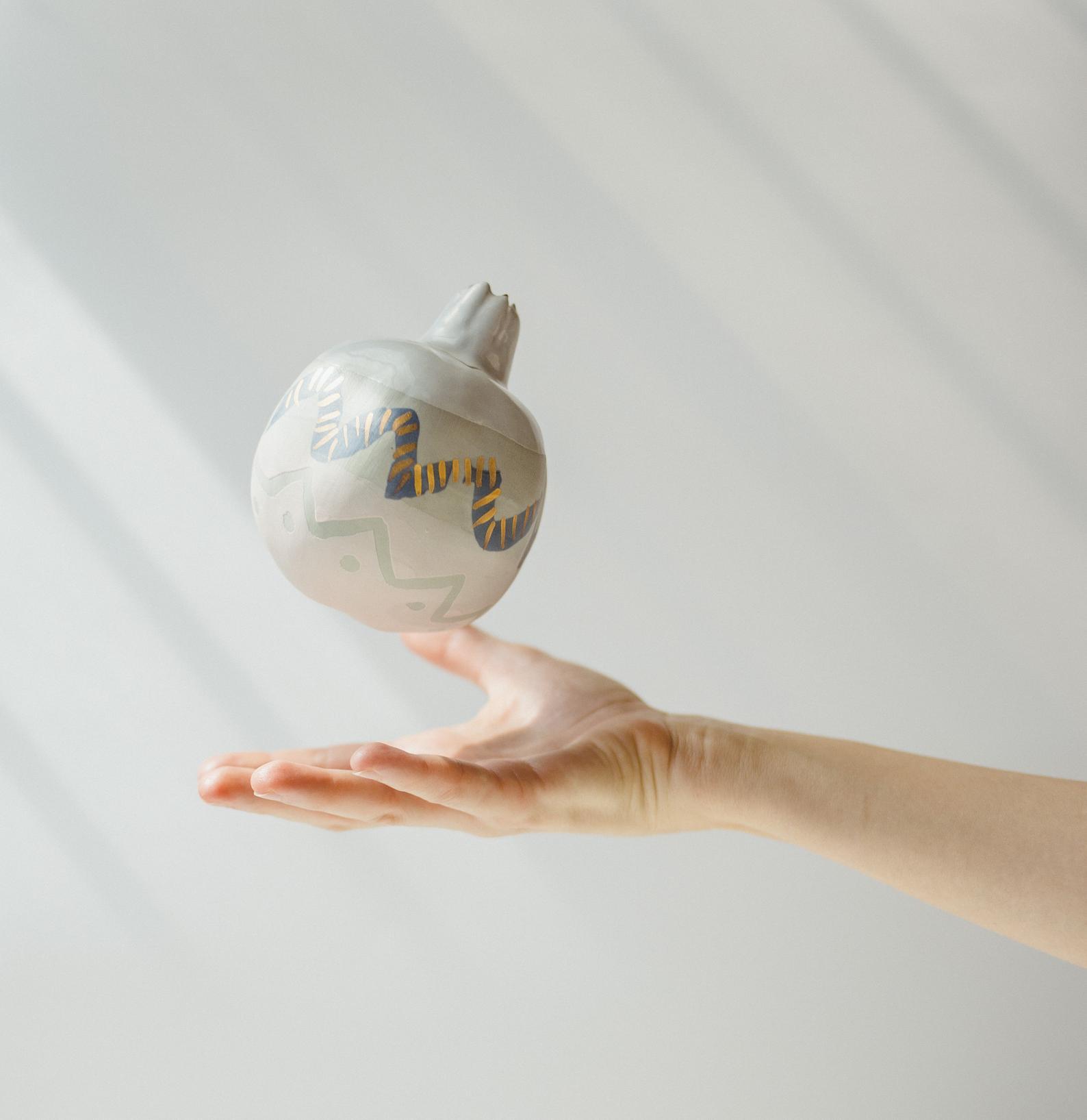 Wavy Blue Pomegranate Sculpture by SIND Studio