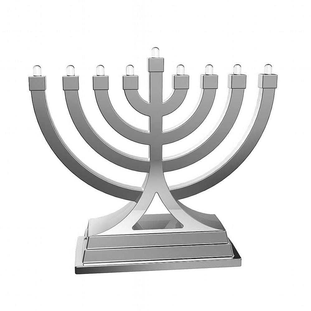 Small Battery Operated LED Menorah - Silver