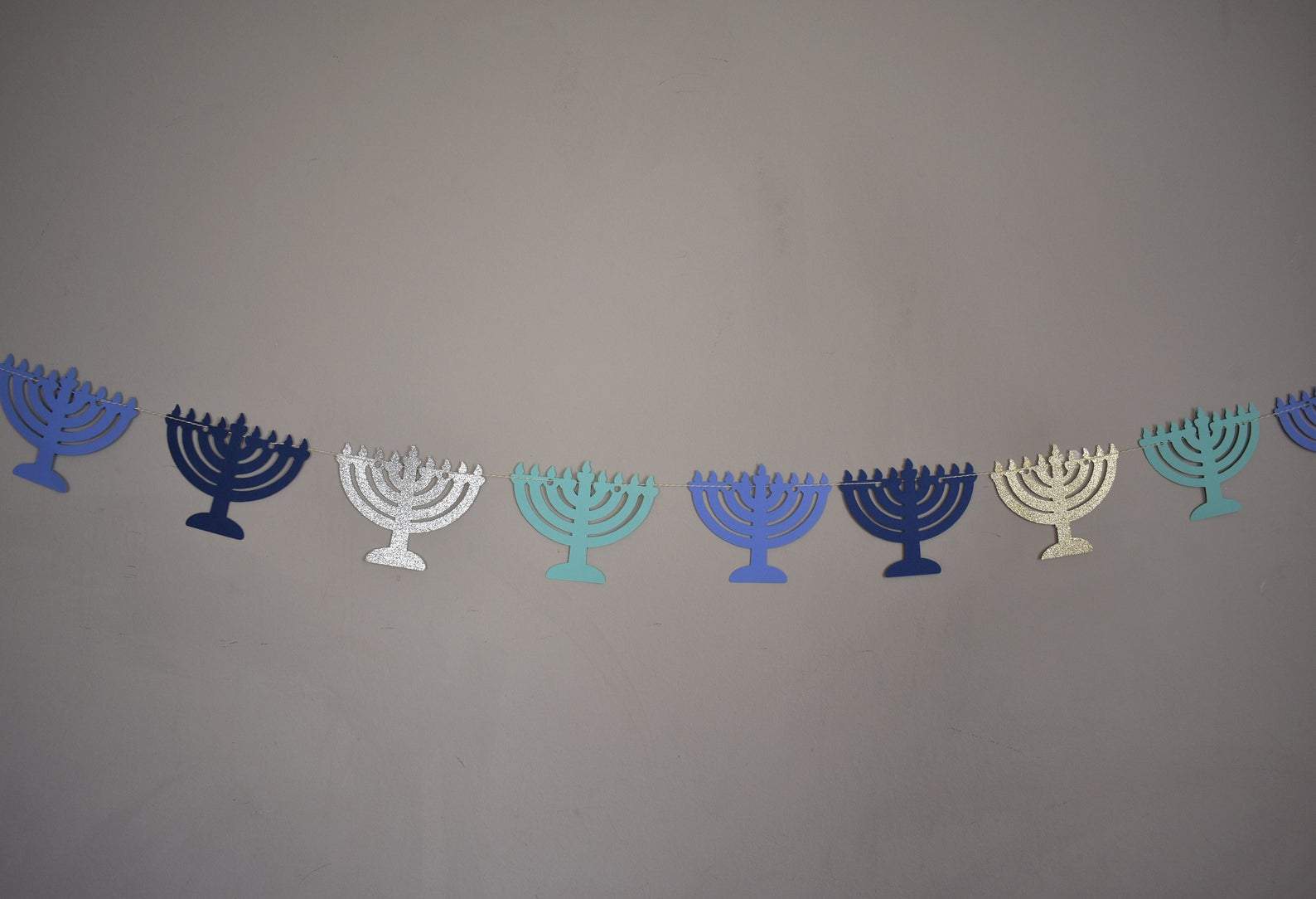 Happy Hanukkah Blue Glitter Banner - Block or Script Letters