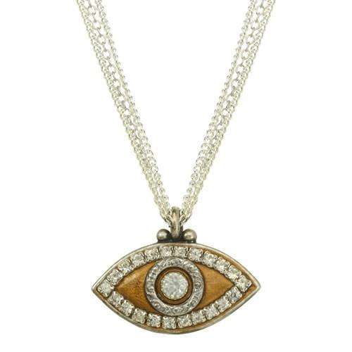 Michal Golan Gold and Bronze Evil Eye Necklace on Triple Chain