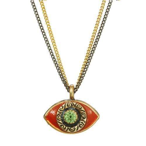 Michal Golan Orange and Green Evil Eye Double Strand Necklace