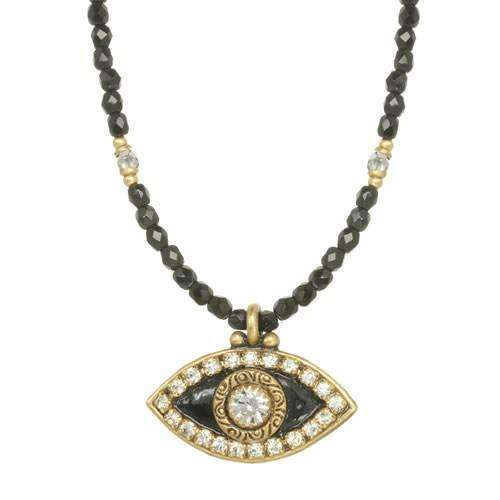 Michal Golan Black and Crystal Evil Eye Necklace on Beaded Chain