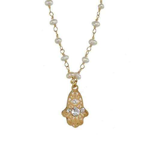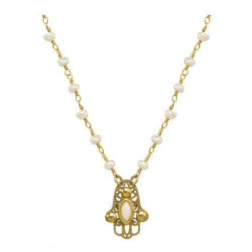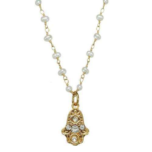 Michal Golan Delicate Hamsa Necklace on Pearl String