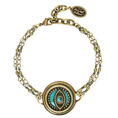Michal Golan Round Teal Evil Eye Bracelet on Double Chain