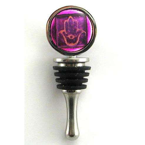 Karen Ehart Vibrant Fuchsia & Purple Wine Stopper - Hamsa