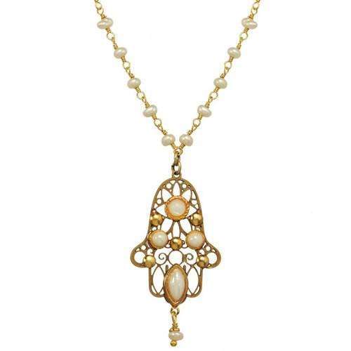 Michal Golan Gold Swirl Hamsa with Freshwater Pearls