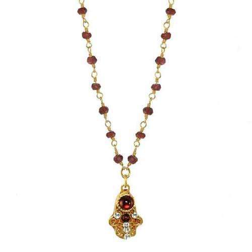 Michal Golan Hematite, Gold, and Silver Hamsa Necklace