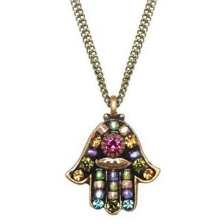 Michal Golan Hamsa Necklace with Multi-Colored Crystals