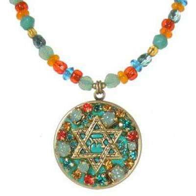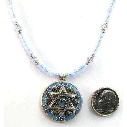 Michal Golan Light Blue Star of David on Beaded Necklace