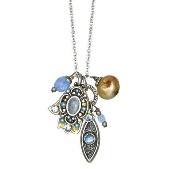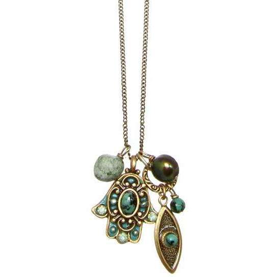 Michal Golan African Turquoise Hamsa and Evil Eye Cluster Charm Necklace