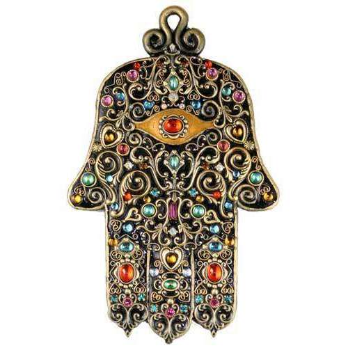 Michal Golan Black Multi Color Ornate Wall Hamsa