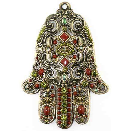 Michal Golan Coral and Turquoise Southwest Wall Hamsa