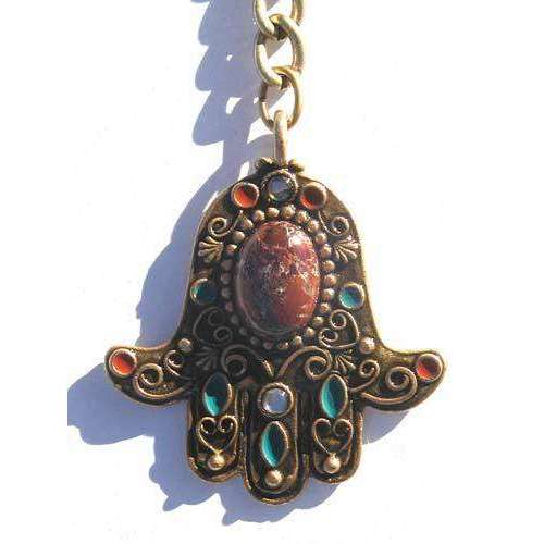 Michal Golan African Turquoise and Garnet Hamsa Keychain