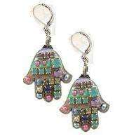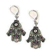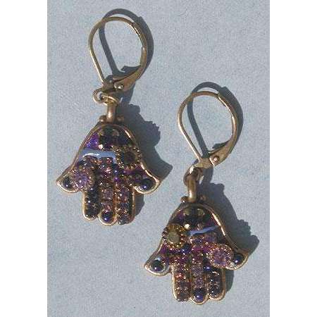 Michal Golan Abalone and Amethyst Hamsa Earrings