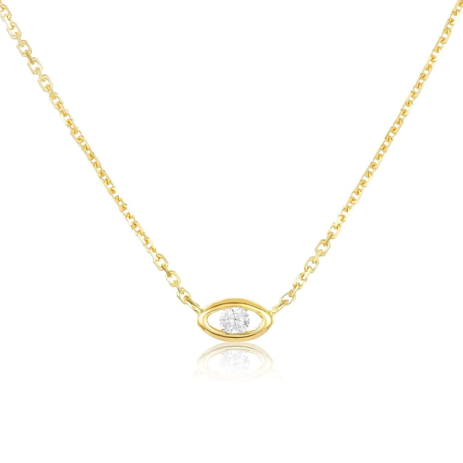 Evil Eye Diamond Bezel Necklace - 14k Yellow, White or Rose Gold