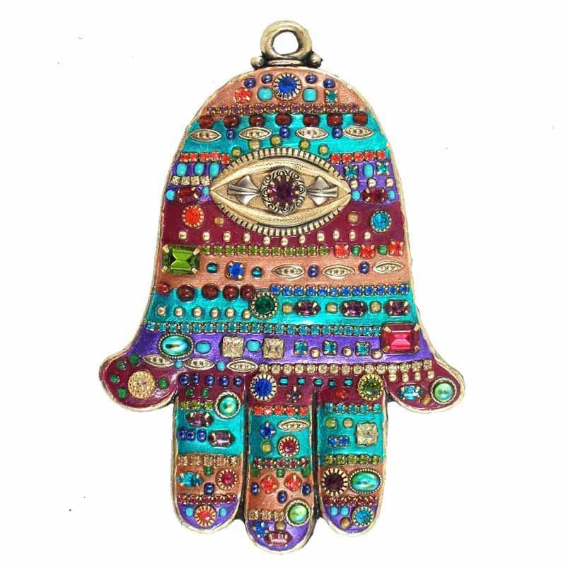 Swarovski Crystals Rainbow Wall Hamsa by Michal Golan