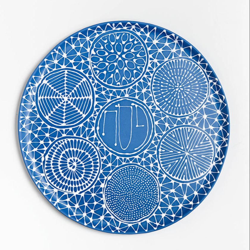 Blue with White Patterns Seder Plate by Maiyan Ben Yona
