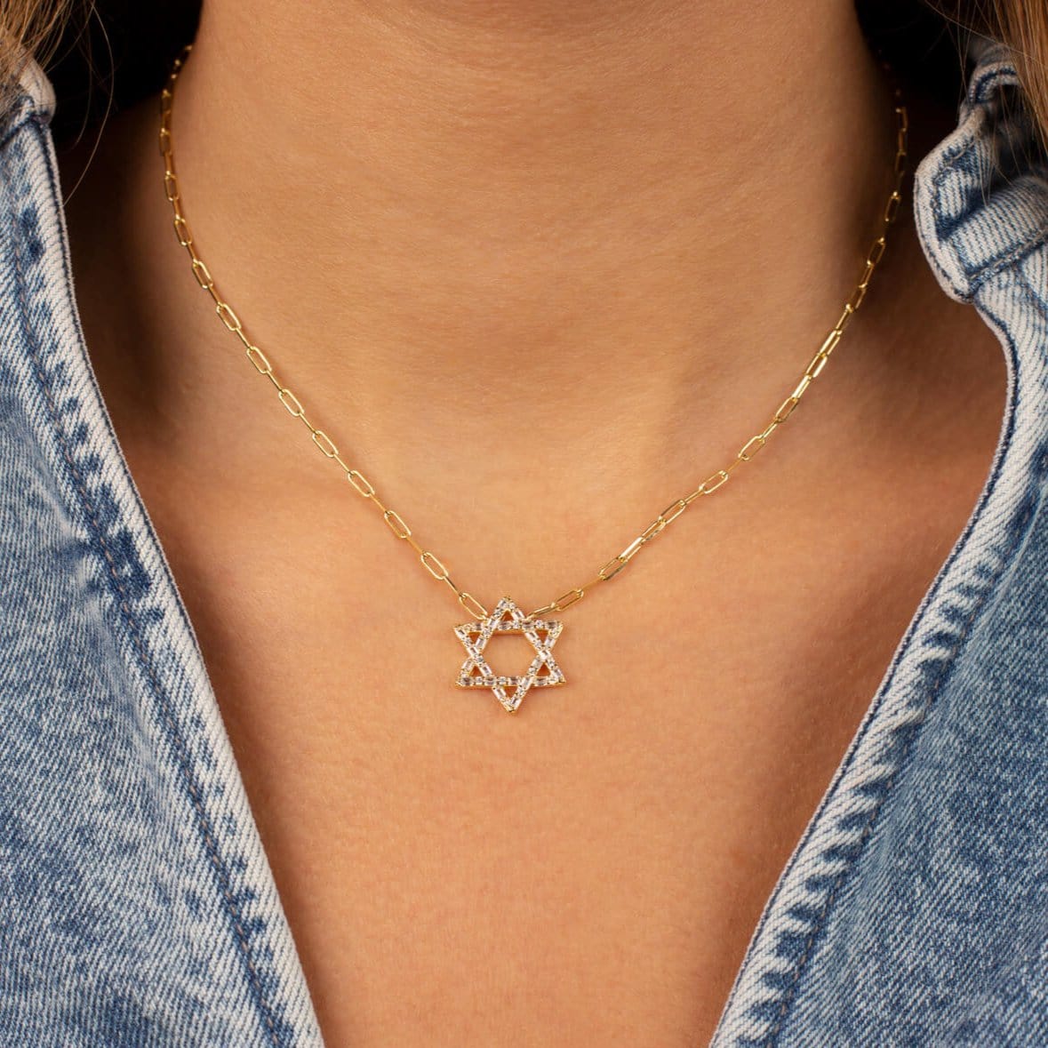 Sparkling Solitaire Baguette Star of David Necklace - Gold-Plated or Sterling Silver