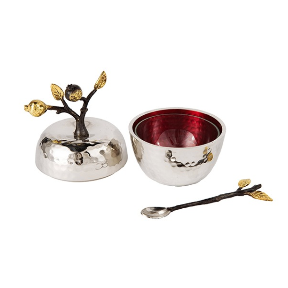 Apple and Pomegranate Honey Dish and Spoon by Yair Emanuel
