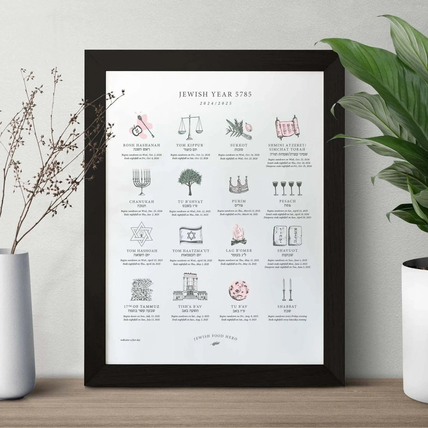 Jewish Holiday Calendar Print 5785 (2024 - 2025) - Frame Not Included
